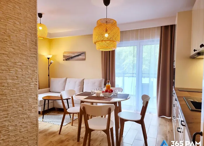 Apartmán Apartmán 365Pam - Perla Pomorza Mielno - Parking W Cenie, umístěný 5 minut chůze od centra města Unieście, nabízí parkování na soukromém parkovišti zdarma na místě. Apartmán má rozlohu 39 m² a je vybaven 1 ložnicemi, 1 koupelnami a kuchyňkou.